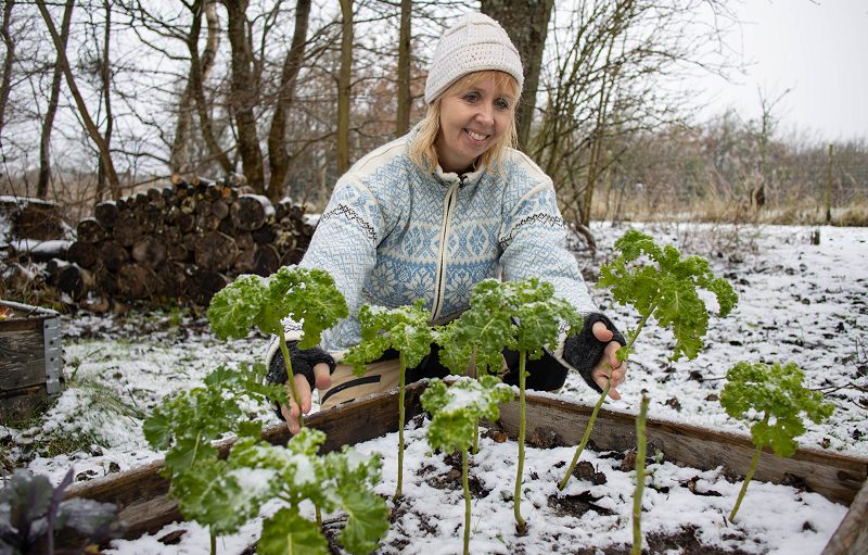 Her midt på vinteren har jeg stadig grønkål i haven som jeg kan plukke af. Jeg laver gerne en skål med friske grønkålsblade, appelsiner og et drys solsikkekerner. Det smager godt og giver en masse godt til kroppen. F.eks. k-vitamin som, der har været særligt fokus på under corona-pandemien, hvor både danske og hollandske undersøgelser indikerer, at patienter, der rammes særligt hårdt at Covid-19-virus har et lavt indhold af K-vitamin, der netop findes i bl.a. grønkål.
