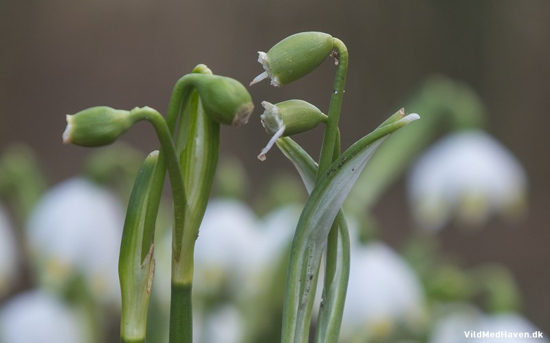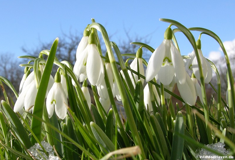 Vintergækker i blomst først på året. Snowdrops hedder de poetisk på engelsk. Men noget spiser dem!