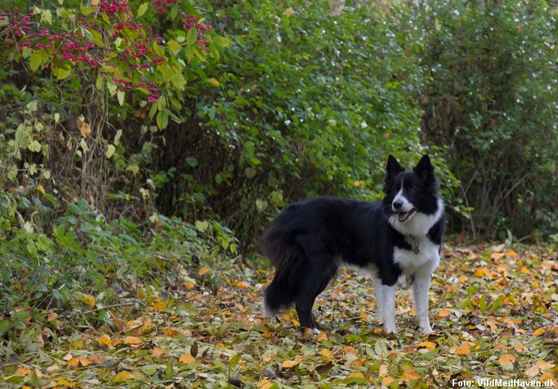 En mild oktobermorgen sidst på måneden, gik jeg en tur rundt i den bagerste del af haven. Her lå en større dynge blade. Vores hund Thea, en glad border collie, kastede sig i bladene og rullede sig rundt. Næsten på samme måde som børnene kunne have fundet på. Det skulle den imidlertid ikke have gjort! Pludselig sad der talrige hvepse i hendes pels. Det kom bag på os begge. Aldrig før har jeg mødt arrige, aktive hvepse omkring et bo så sent på året! Thea forsøgte først at snappe efter de stikkende væsner. Derpå søgte hun væk mellem træerne og rullede sig rundt i græsset for at slippe af med hvepsene i pelsen. Jeg ved ikke hvor mange stik hun fik, men hun virkede heldigvis ikke synderligt mærket af episoden. Jeg selv slap med skrækken.