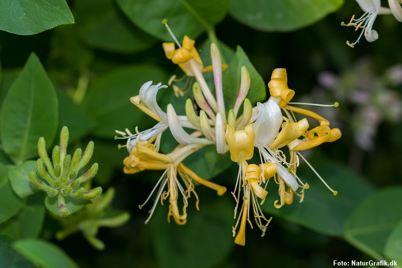 Fra midt i juni blomstrer den vilde kaprifolie. Om dagen dufter den beskedent, men henunder aften bliver der kraft på blomsternes sødmefulde duft. Det er ikke uden grund. Blomsterne lokker for aftensværmerne, der med deres lange snabler kan nå ned og bestøve blomsterne. En af de mest markante aftensværmere er den store ligustersværmer, der kan nå et vingefang på 11-13 cm. Som en kolibri kan ligustersværmeren stå stille i luften, mens den lange snabel er på arbejde dybt inde i blomsten.