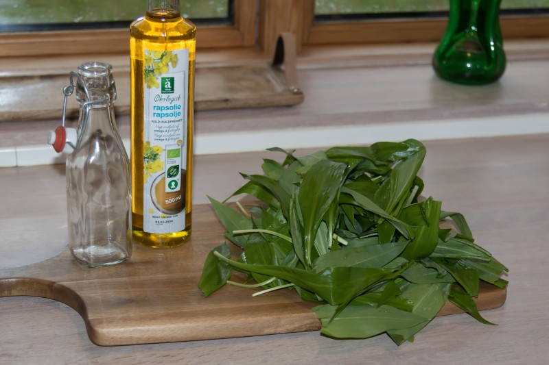 For nogle år siden fik jeg lidt ramsløg-planter foræret og plantede dem under en gruppe træer i haven. Jeg var blevet advaret om at ramsløg kan brede sig uhæmmet – og de få planter er nu blevet til 3-4 kvadratmeter. Det gør dog ikke noget indtil videre, da vi gerne bruger de velsmagende blade til alt fra ramsløg-salt, -olie, -smør til syltede blomsterknopper. Det er dog ramsløg-pestoen, der er den mest populære. Det er virkelig nemt at lave.
