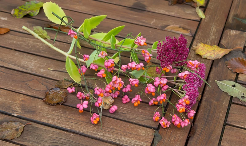 Sankthansurt er fin i en efterårsbuket. Her sammen med benved – i oktober.